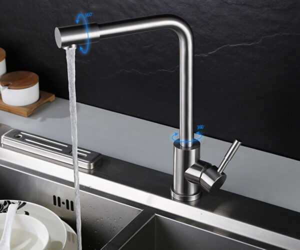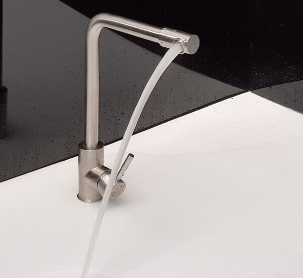 Ống vòi quay 360 độ, điều hướng dòng chảy mợi nơi theo yêu cầu. Ống quay 360 độ lên thân vòi có thể lắp cho tay cầm mở nguồn nước bên trái, bên phải hay nằm mặt trước vòi đều được