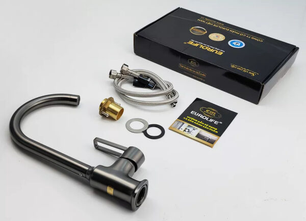 Vòi rửa chén nóng lạnh Đồng mạ tĩnh điện màu xám Grey Eurolife EL-KM13