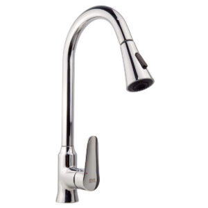 Vòi rửa chén nóng lạnh cần lò xo Đồng mạ Chrome Eurolife EL-KM03 (Trắng bạc)